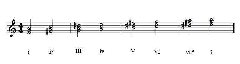 In the next picture we see the chords that are created by the addition of the “D#” to the scale.
